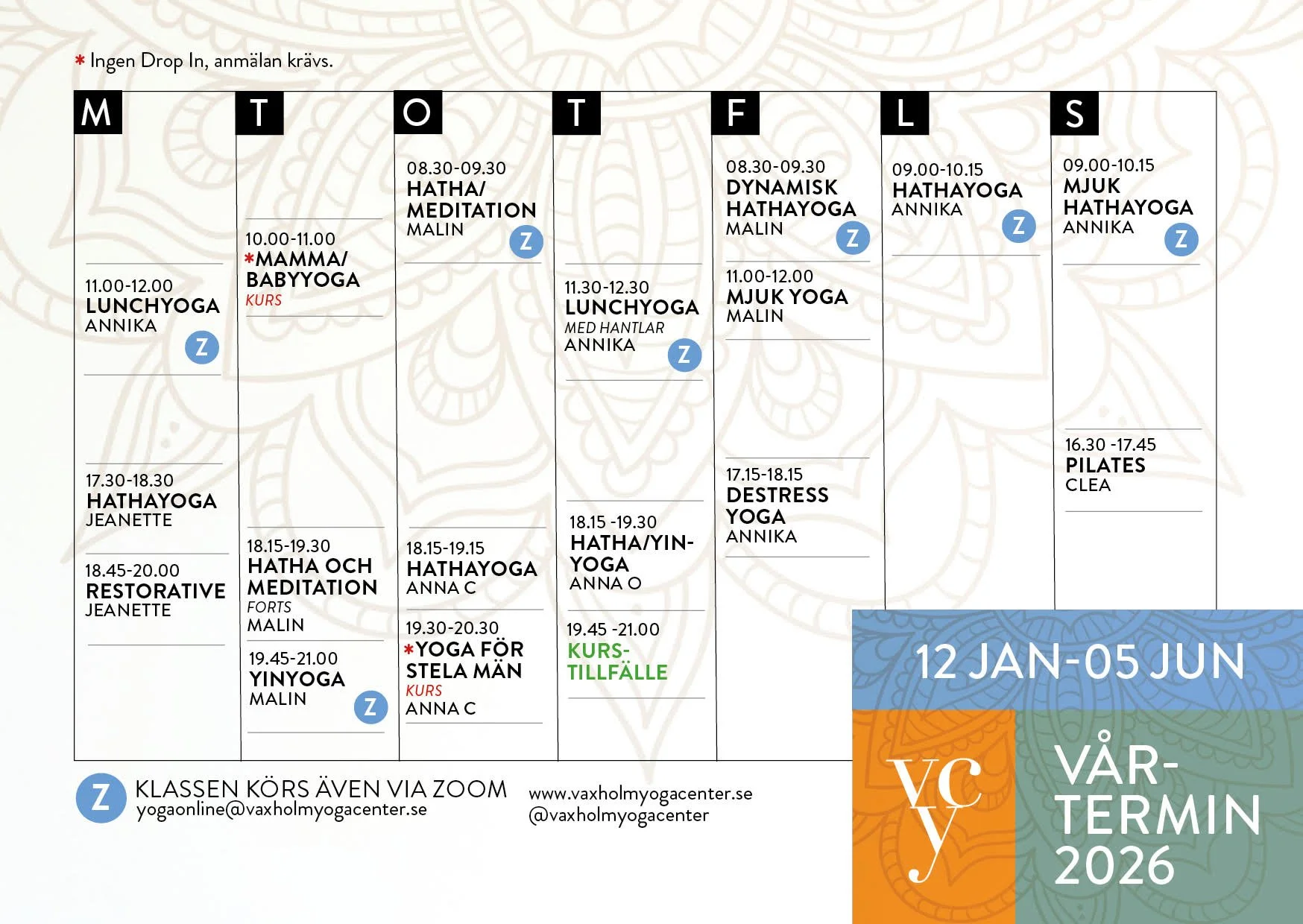 Anmälan och frågor: Anmälan med namn och adress till Info@vaxholmyogacenter.se